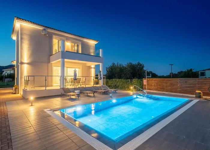 Oferind un patio cu vedere la mare, Artemon New Luxury Villa Skala, se află la 37 de minute de mers cu mașina de Aeroportul Argostoli Kefalonia. Această vilă se află la 20 de minute de mers pe jos de Plaja Mounda și oferă oaspeților Wi Fi și o parcare.